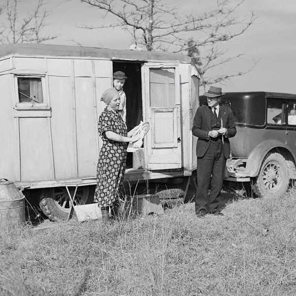 Reverend Bullard, preacher, and family with trailer home. Alexandria, Louisiana, Farm Security Administration – Office of War Information Photograph Collection (Library of Congress), LC-USF34- 056656-D