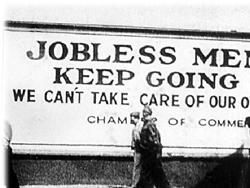 How’s a Man to Find Hope in These Hard Times? When things went bad back in twenty nine | I would start my days on the hiring line | ‘Till the man said stand for relief instead | I got a cup of cold coffee and a stale loaf of bread | Pride stuck in my gullet, eyes square on the floor | I said “with kids at home sir—could I have a little more?” | You’ll find me broke up, beat down, threadbare and poor | Shuffling along killing time | In the weeks months and years since they shut down that hiring line | Your almighty dollar says “in god we trust” | Tell where was he sir when the banks went bust? | And big backroom bailouts left us in the lurch | You know that way back when they threw the bankers out of church | But now the fix is in and nobody cares | About their big corner offices and big leather chairs | That they made out like bandits and they’re still sitting there | While we’re scratching for nickels and dimes | In the weeks months and years since they shut down those hiring lines | See fear will hollow you out from the inside my friend | you’re scared as hell they’ll never come round hiring again | We’re just heartbroken and desperate shadows of men | Doing what we can to survive | In the weeks months and years since they shut down the hiring line | ‘Cause I did fifteen years on the factory floor | And if I had my way sir I’d a done fifty more | Back when they turned us out I odd-jobbed for a spell | For a while had me Mr. Sickler’s apples to sell | But in nineteen hundred and thirty two | There are too many men chasing not enough to do | Now I end my nights in a Hooverville | And if he ain’t gonna help us tell me who the hell will? | How’s a man to find hope in this hard time | In the weeks months and years since they shut down the hiring line