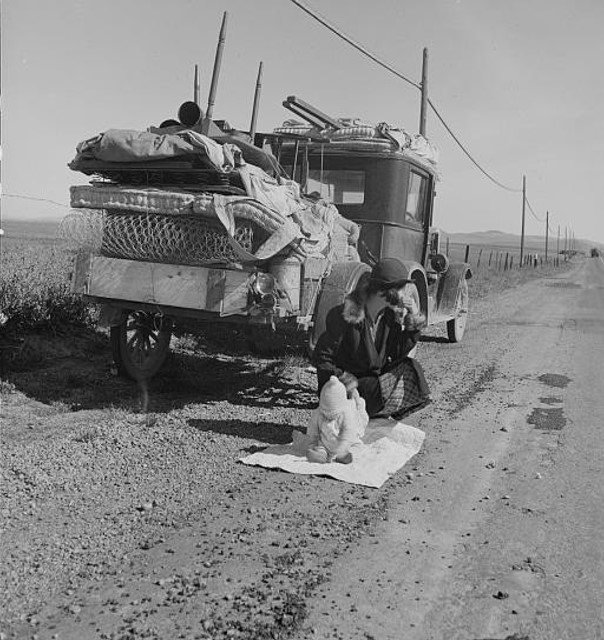 Down to Our Last Dollar In our rusty old truck alongside of the highway In the Devil’s own corner of the USA | It’s down to fuel or food with our last dollar | Darlin’ I don’t think we’re having supper today |No darlin’ I don’t think we’re having supper today |Now it’s three weeks gone since we left Muskogee County | Once the locusts finished eating what the sun didn’t fry | We up and hit the road when the banker came a’knockin’ | Sorry Mister Banker but the well’s run dry | I’m sorry Mister Banker but the well’s run dry | ‘Cause when there ain’t no work and there ain’t no rain | Can you tell me what the hell a simple man’s supposed to do? | When you’re just another wanderer in this ragged wagon train | Strung out along this highway like a hurricane’s torn through | Strung out along this highway like a hurricane’s torn through | Last night around the fire a preacher said the Bible says | “The Lord insists on kindness for the humble and the sick” | Well I appreciate the sentiment but when I meet my maker, I’ll say | “Give you A for effort but you didn’t make it stick” | “I’ll give you A for effort Lord but you didn’t make it stick” | ‘Cause where there ain’t no love and there ain’t no justice | Can you tell me where the hell a simple man’s supposed to go? | When every town is sending cops and Pinkertons to bust us| Tearing down our camp to send us packing down the road | Tearing down our camp to send us packing down the road | A crying child, a kerosene smell | Driving through these croplands baked into a dusty hell |Broke and sick and hungry, tired to the bone | Just a simple farming family searching for a home | We’re just another simple farming family searching for a home
