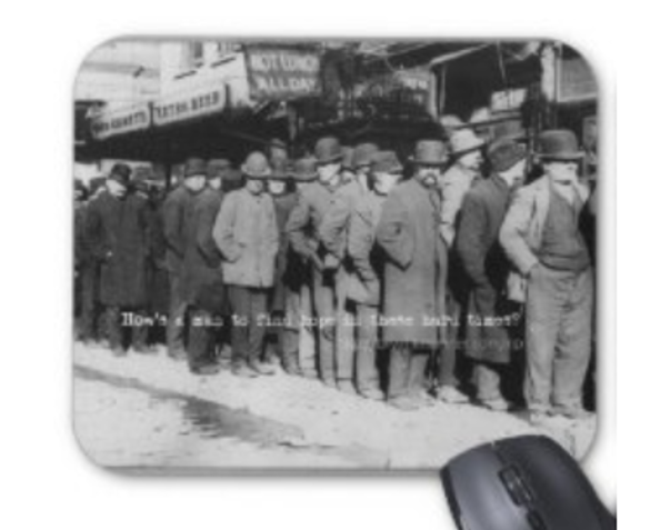 “How’s a Man to Find Hope in These Hard Times” mousepad. This image really started the whole songwriting process: this is now my mouse pad in my studio. Buy at Zazzle.