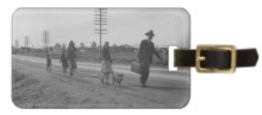 “What are Working Folks to Do” luggage tag. The image just fits, doesn’t it (on the back there’s space for your name and all that). Buy at Zazzle.
